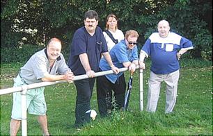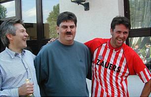 Fröhliche Minen beim Saisonabschluss im Juni 2001 (von links):