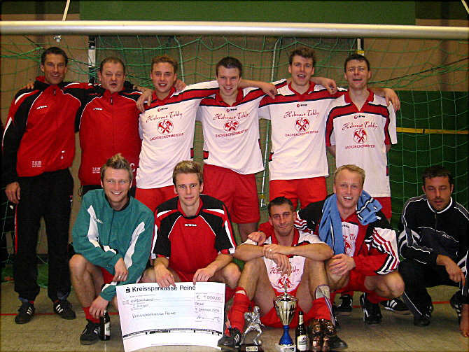 Stehend von links: Trainer Uwe Hinze, Betreuer Manfred Gerhard, Michel