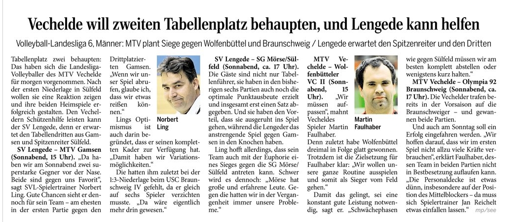 Volleyball: Lengede erwartet den Spitzenreiter und den Dritten