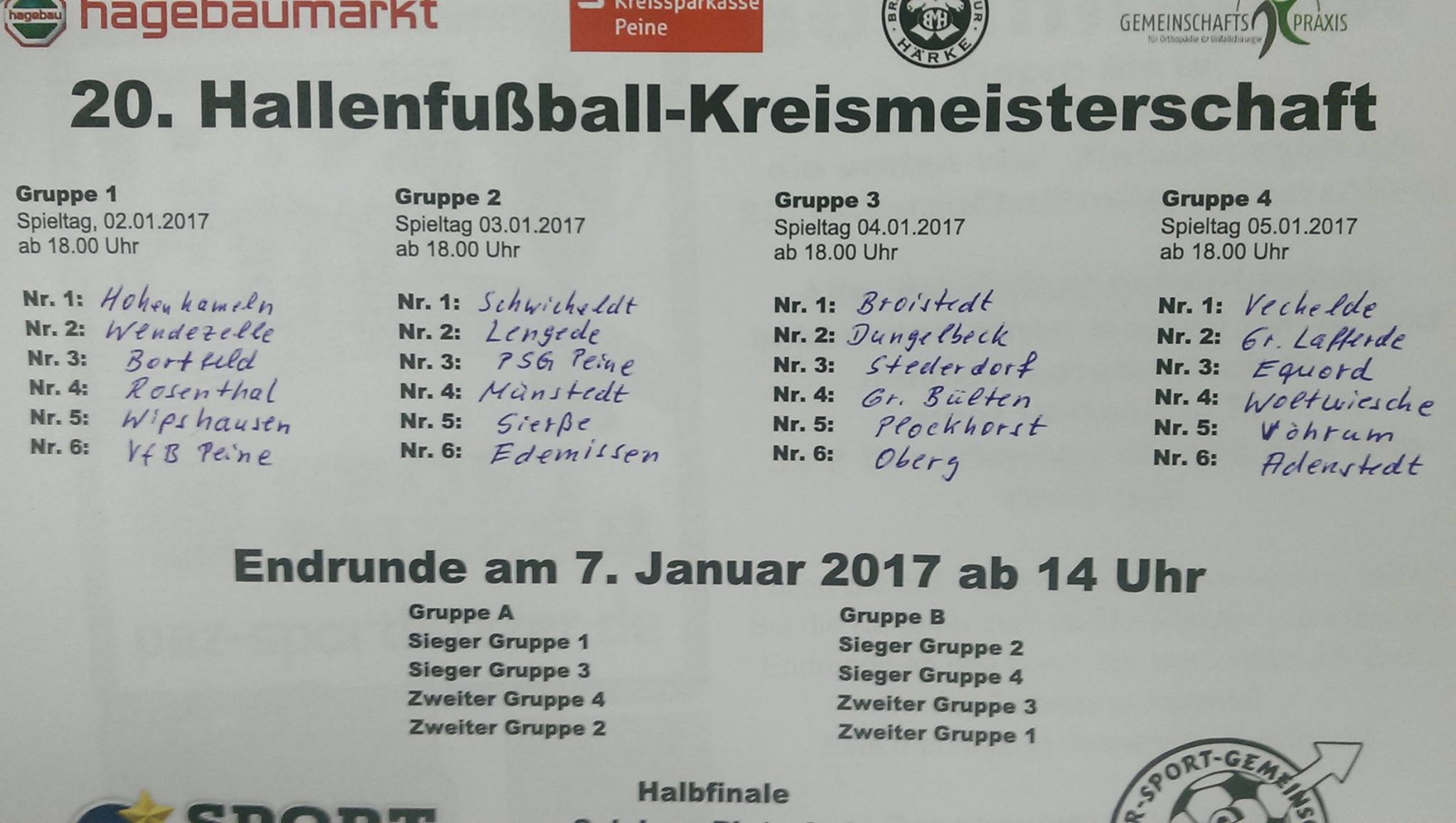 Die handschriftliche Mitschrift zur Auslosung der Vorrundengruppen zum PAZ Cup 2017
