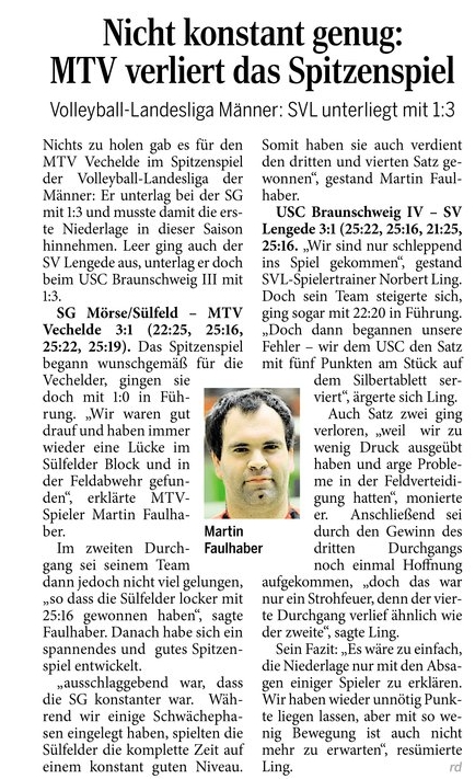 Volleyball: USC Braunschweig IV – SV Lengede 3:1
