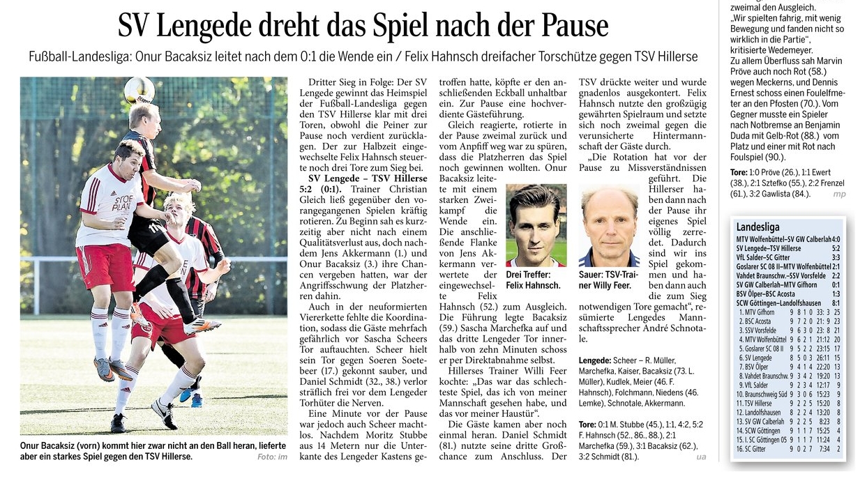 Fußball: Heimsiege für die 1. und 2. Herren des SV Lengede. Die PAZ berichtet 12. Oktober 2015 svladmin 1. Herren, 2. Herren, Fußball