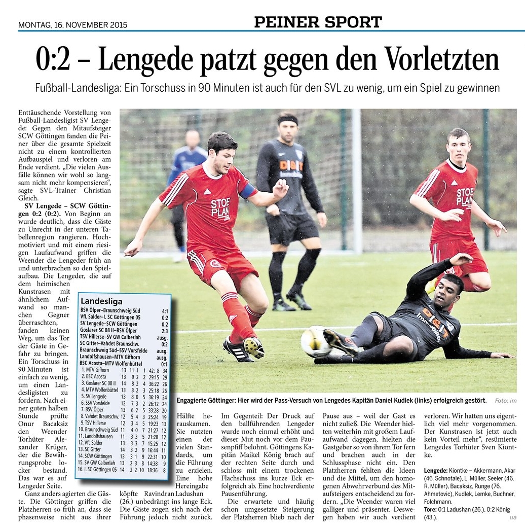 SVL verliert zu Hause verdient. Ein Bericht aus der PAZ 16. November 2015 svladmin 1. Herren, Fußball