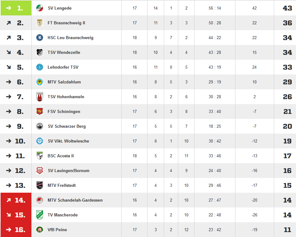 Die aktuelle Tabelle nach dem 18. Spieltag: