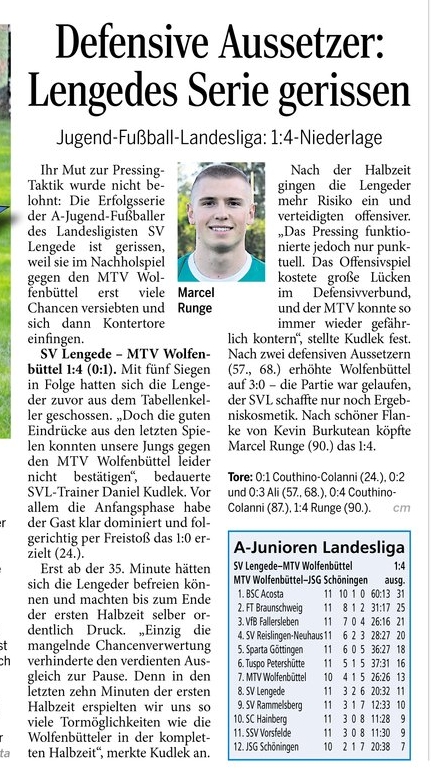 U19 – Serie gerissen. Ein Bericht aus der PAZ