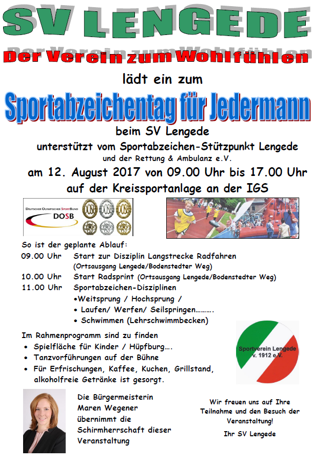Der SV Lengede lädt ein zum Sportabzeichentag für Jedermann am 12. August 2017 17. Juli 2017 svladmin Verein Ein Klick auf das Bild öffnet die Originaldatei im PDF-Format
