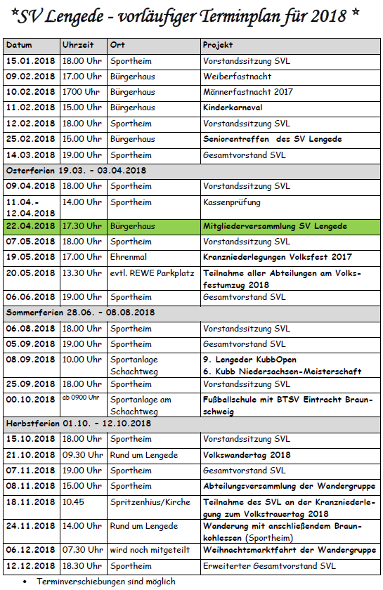 SV Lengede – vorläufiger Terminplan für 2018 17. Januar 2018 svladmin Verein Ein Klick auf das Bild öffnet die Original Datei im PDF-Format