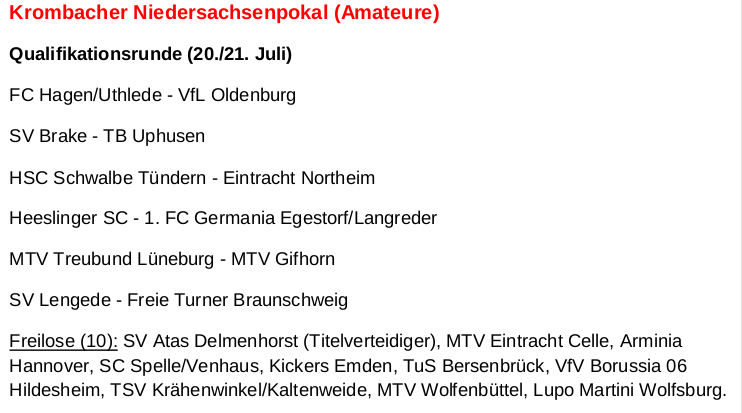 Fußball: Auslosung Krombacher Niedersachsenpokal – „Derby“ für den SVL 15. Juni 2019 svladmin 1. Herren, Fußball, Verein Ein Klick auf das Bild öffnet das Original Dokument im PDF Format