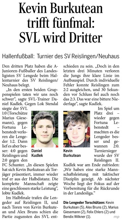 A-Junioren belegen beim Hallenturnier den dritten Platz – Ein Bericht aus der PAZ 29. Januar 2015 svladmin Fußball, U19