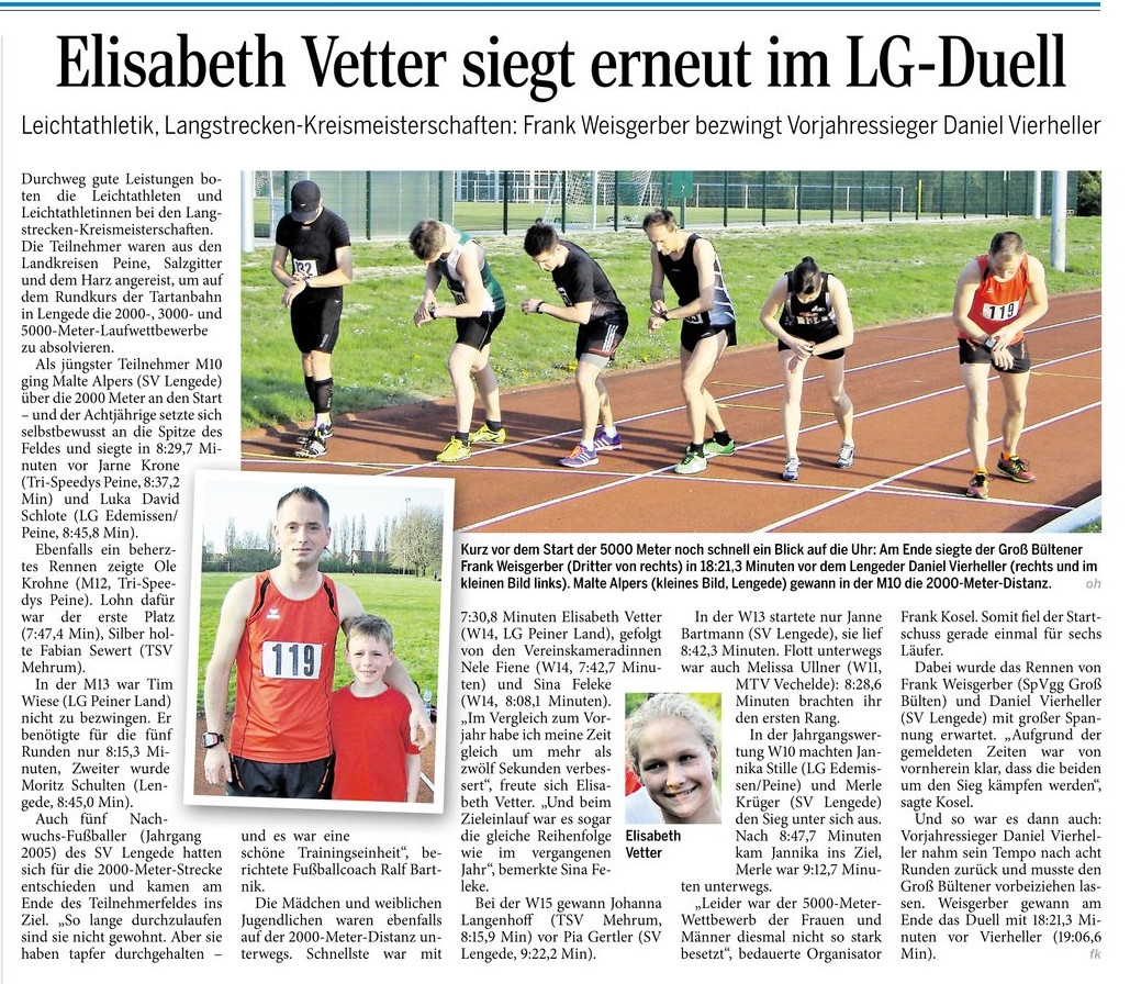 Leichtathletik: Langstrecken-Kreismeisterschaften, ein Bericht aus der PAZ 18. Mai 2015 svladmin Leichtathletik