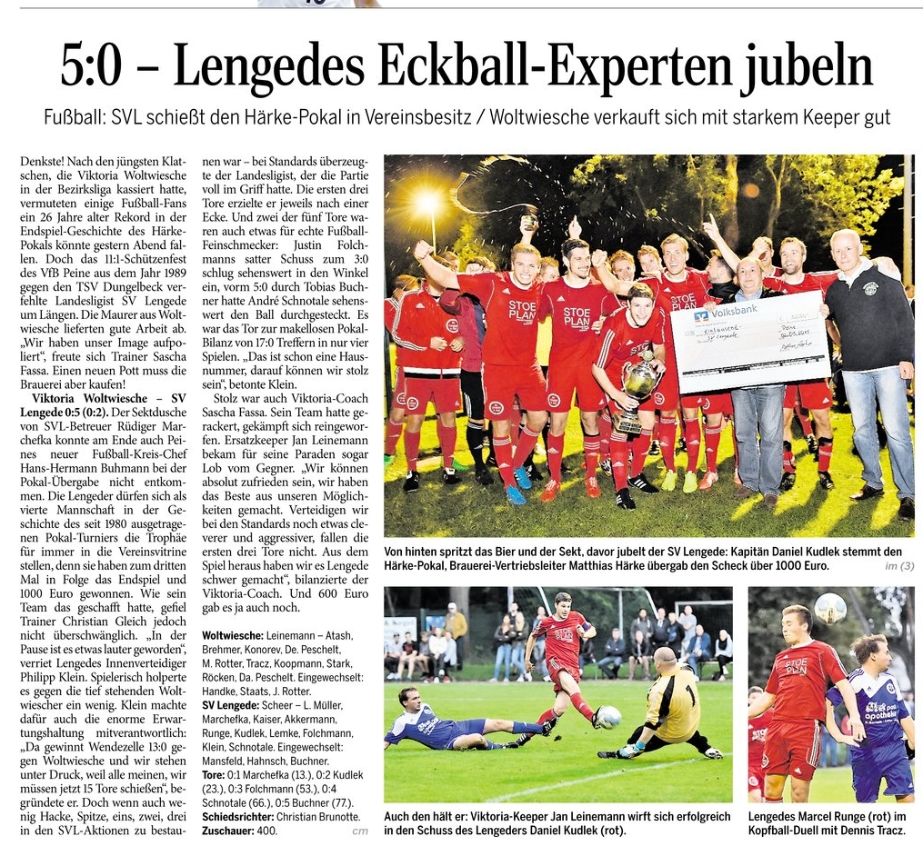 SV Lengede gewinnt Härke Pokal – zum fünften Mal. Ein Bericht aus der PAZ 3. September 2015 svladmin 1. Herren, Fußball